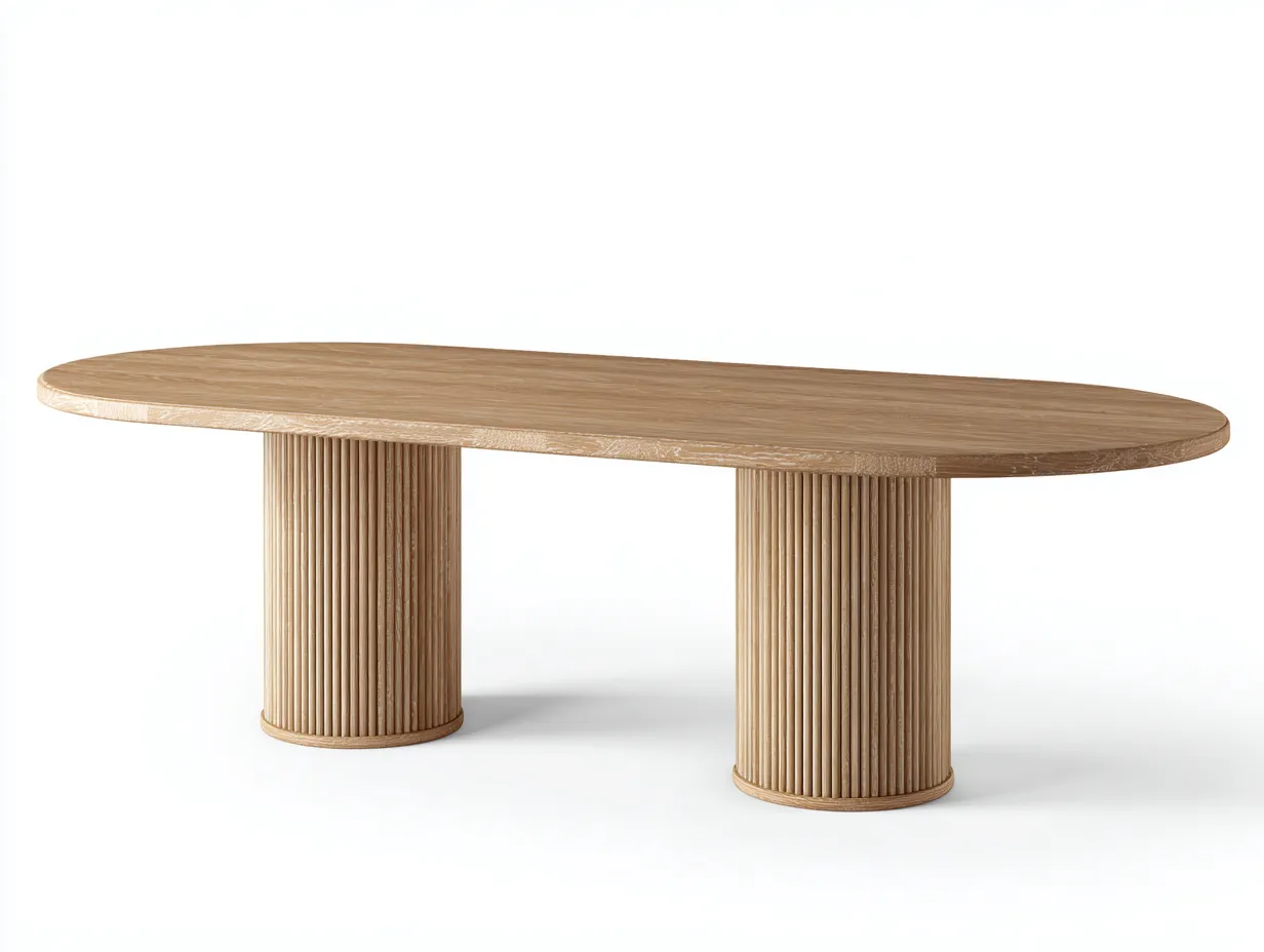 Owalny kształt stołu umożliwia wygodne rozmieszczenie miejsc siedzących i sprzyja swobodnej komunikacji. Stabilna konstrukcja sprawdza się w różnych warunkach użytkowania. Uniwersalny styl dobrze komponuje się z aranżacjami nowoczesnymi oraz naturalnymi.